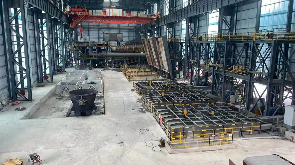 傾翻機構(gòu)將約1600℃熔融鋼渣送入熱破碎間。